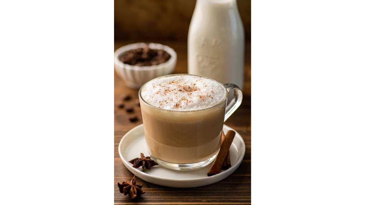Combined with espresso shots and chai concentrate, enjoy your dirty chai latte topped with comforting spices.